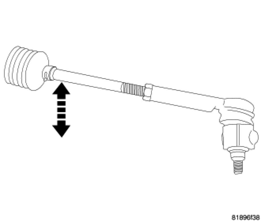 Grasp the outer tie rod near the ball stud and attempt to move the tie rod straight up and down. If any free-play is felt, replace the outer tie rod. If no free-play is felt at the outer tie rod, attempt to move the inner tie rod in the same manner. Refer to the following procedure.