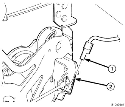 8. Connect wiring connector (1) at parking brake indicator lamp switch (2).