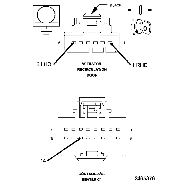 2. Measure the resistance between ground and the (C32) Recirculation Door Driver circuit.