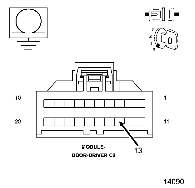 3. Measure the resistance between ground and the (Q221) Master Switch Left Front Window Mux circuit in the Driver Door Module C2 connector.