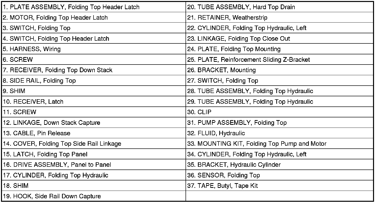 Retractable Hard Top (RHT) Panels and Weatherstrips