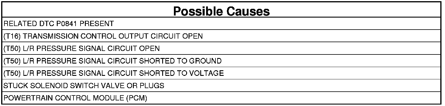 - Repair the (T50) L/R Pressure Signal circuit for a short to voltage.