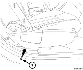 6. Remove the fastener (1) attaching the side shield to the bottom of seat frame.