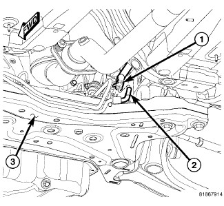 5. Install the screws (3) securing the return hose to the frame rail (2). Tighten the screws to 8 Nm (71 in. lbs.).
