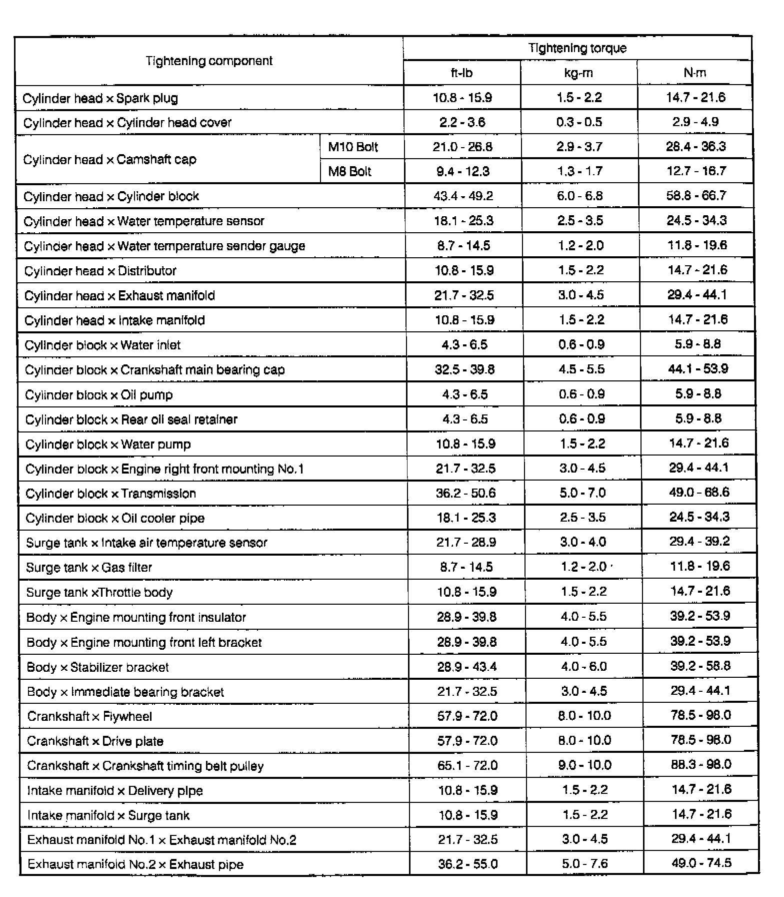Torque Specifications