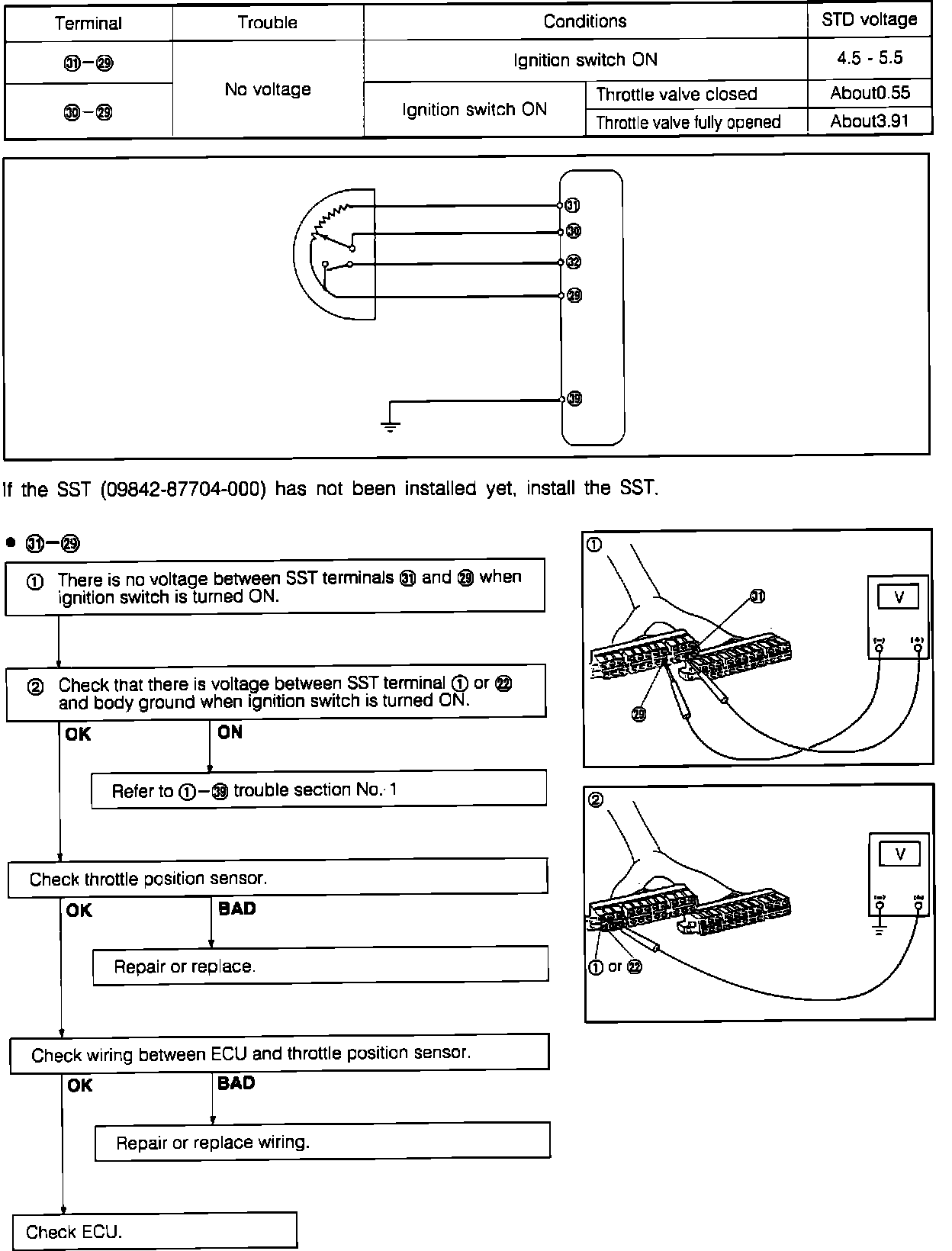 Fig. 48 ECU System Diagnosis, Throttle Position Sensor Check (Part 1 Of 2):