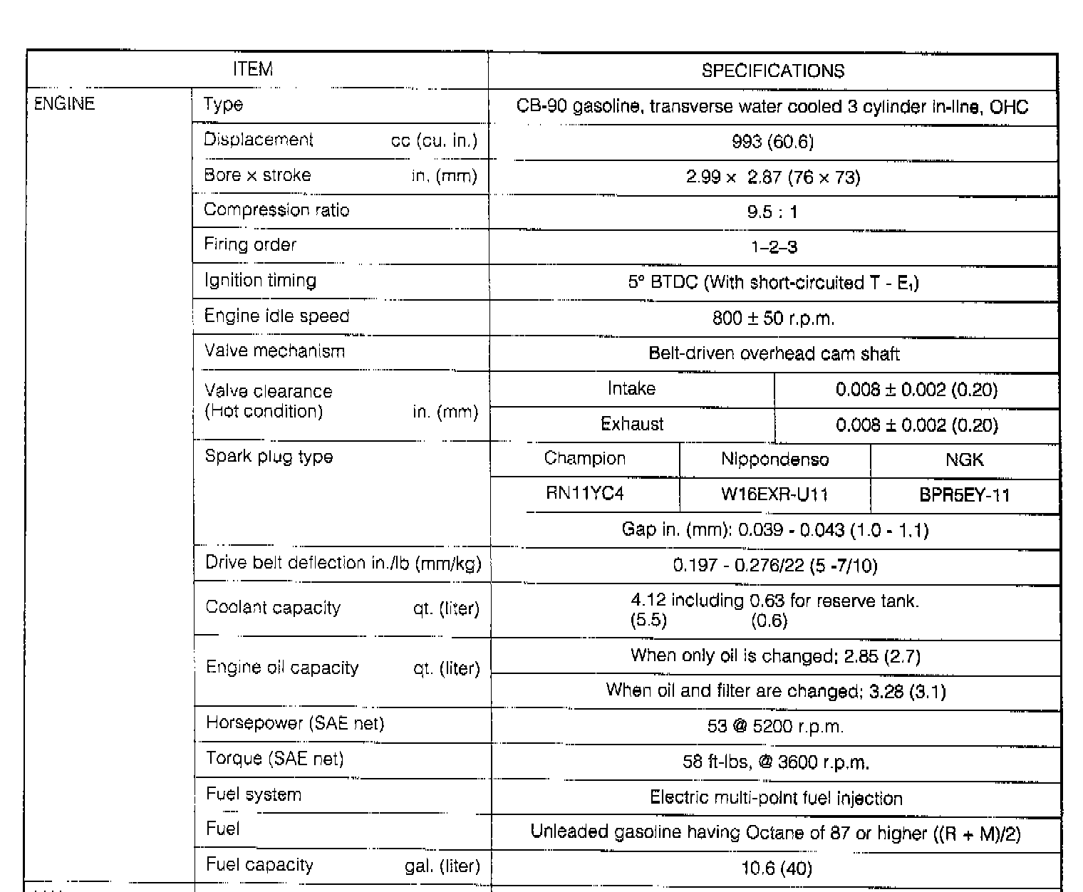 Charade L3-0993cc 1.0L