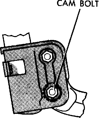 To adjust camber, loosen cam and through bolts. Rotate upper cam bolt to move top of wheel in or out to achieve specified camber angle. Torque attaching nuts to 75 ft. lbs. plus an additional 1/4 turn.