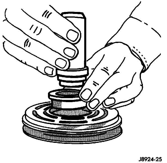 5. Place the driver tool assembly into the bearing cavity on the rotor. Make certain the outer edge of the tool rests firmly on the rotor bearing inner race.