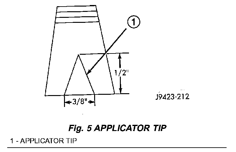 6. Apply a 13 mm (l/2 in.) high and 10 mm (3/8 in.) wide bead of urethane around the perimeter of windshield. At the bottom, apply the bead 7 mm (1/4 in.) inboard from the glass edge. On the three sides where the molding is on the glass, follow the edge of molding. The urethane bead should be shaped in a triangular cross-section, this can be achieved by notching the tip of the applicator (Fig. 5).