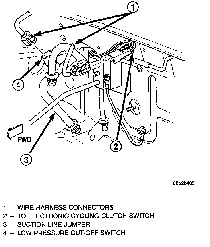 2. Unplug the wire harness connector from the low pressure cut-off switch on the suction line jumper near the expansion valve.