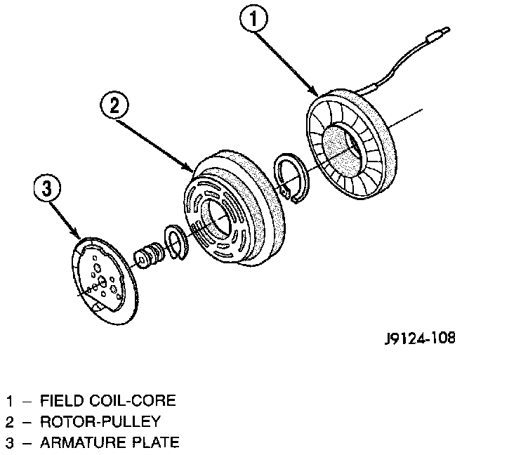 9. Note the alignment of the clutch field coil assembly on the compressor before removing it for correct reinstallation.