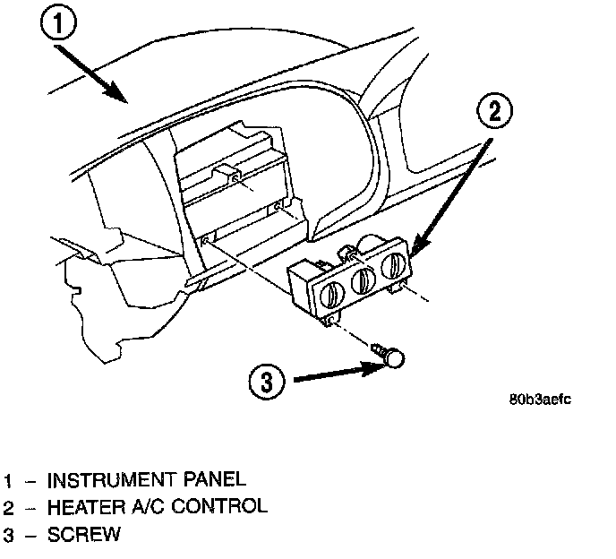 5. Remove the three screws that secure the heater-A/C control to the instrument panel.