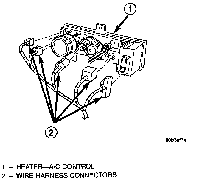 7. Unplug the wire harness connectors from the back of the heater-A/C control.