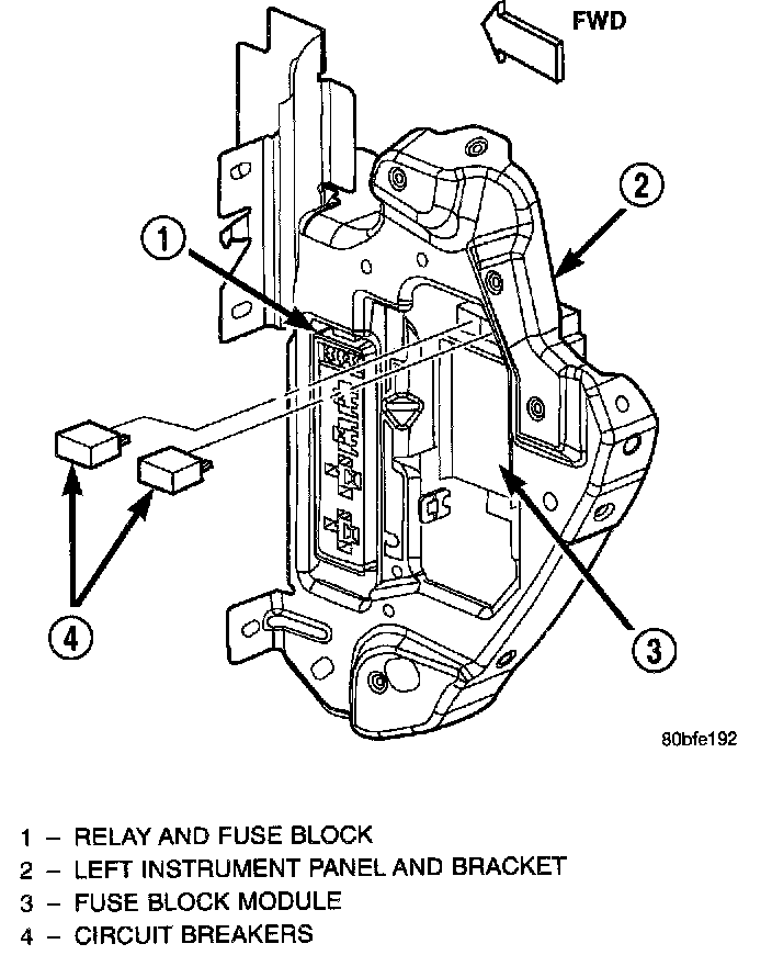 4. Install the circuit breaker by aligning its terminals with the cavities in the fuseblock module and pushing the circuit breaker firmly into place.