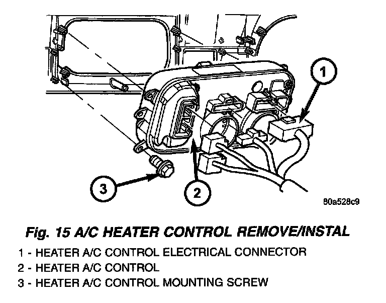 Fig. 15 A/C Heater Control Remove/Install: