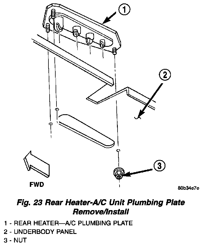 Fig. 23 Rear Heater-A/C Unit Plumbing Plate Remove/Install: