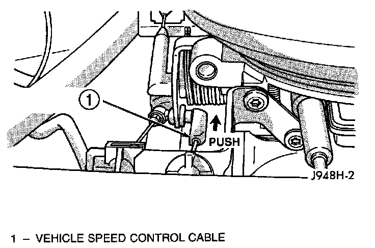 5. Squeeze 2 tabs on sides of speed control cable at throttle body mounting bracket (locking plate) and push out of bracket.