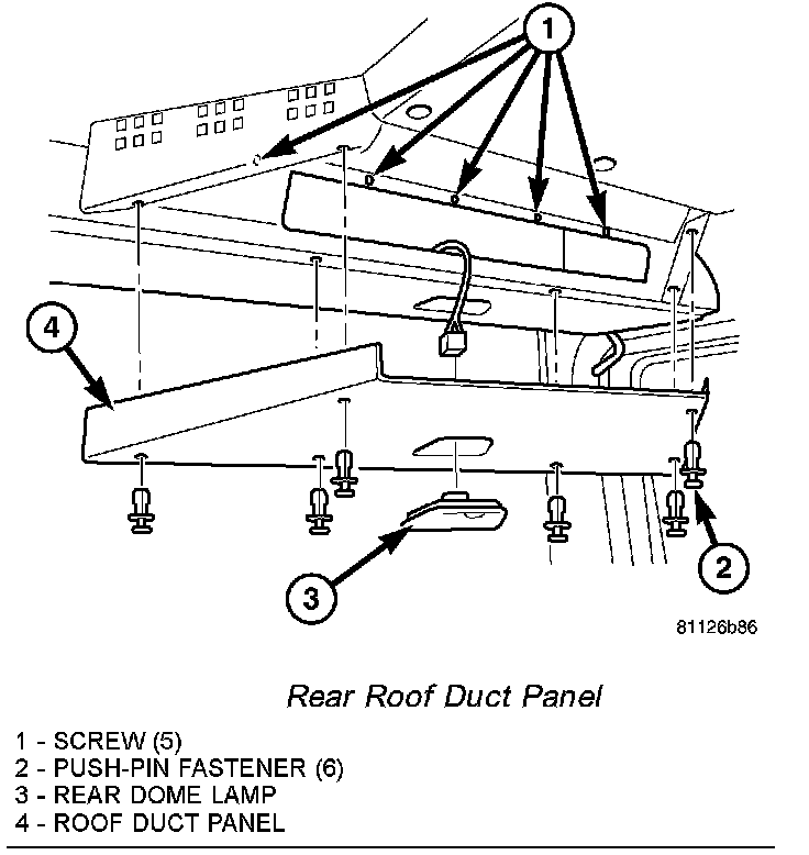 4. Remove the six push-pin roof duct panel fasteners and remove the duct panel from the vehicle.