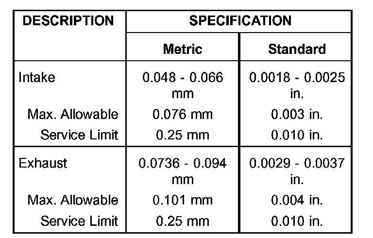 Valve Stem to Guide Clearance: