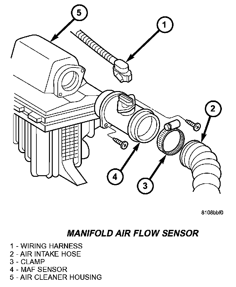 4. Remove the screws retaining the MAF sensor to the air cleaner housing, and remove MAF sensor.