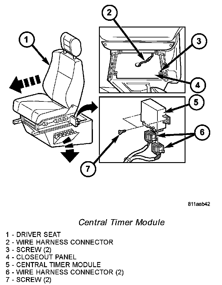 7. Remove the central timer module from the vehicle.