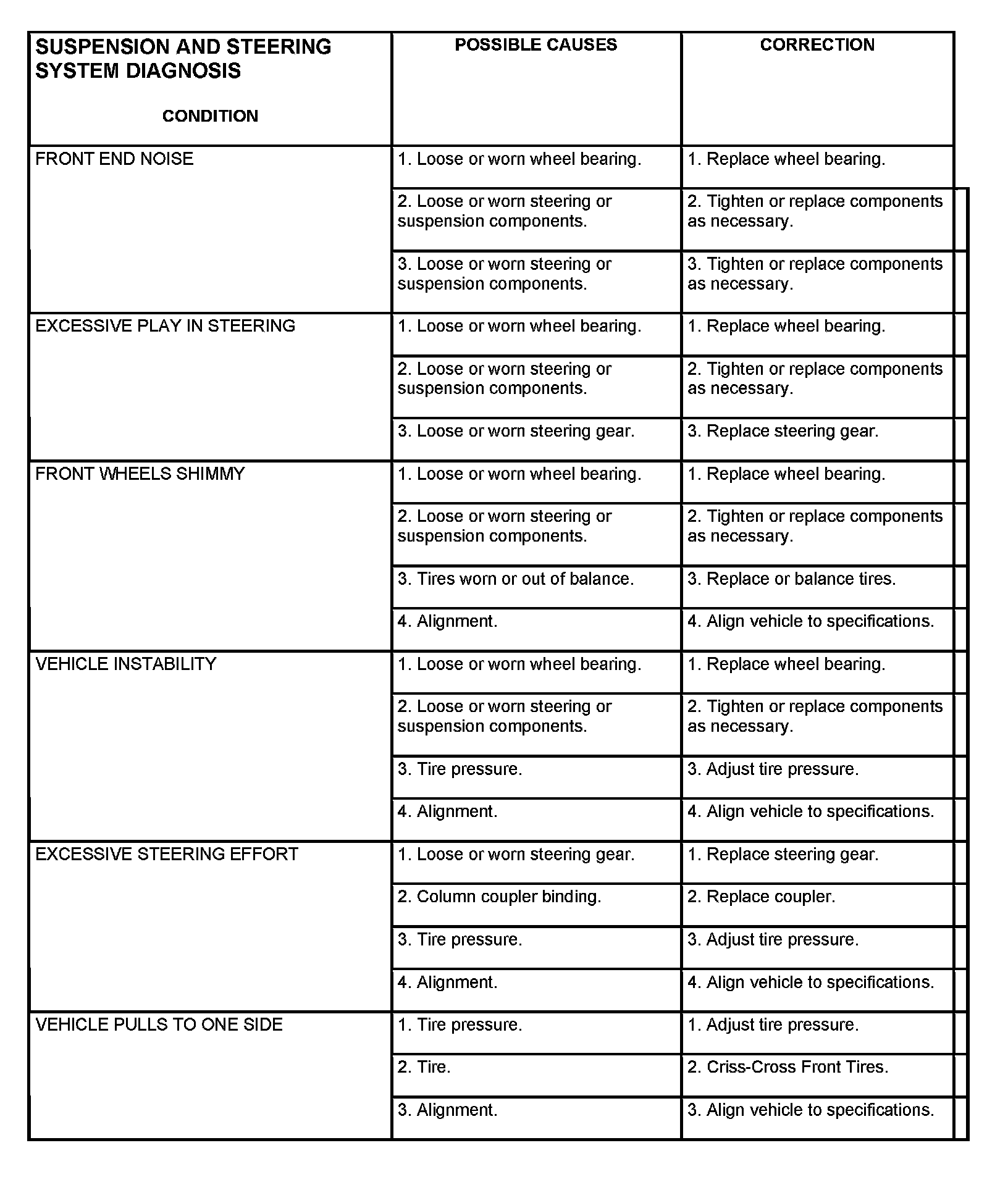 Before starting wheel alignment, the following inspection and necessary corrections must be completed. Refer to Suspension and Steering System Diagnosis Chart.