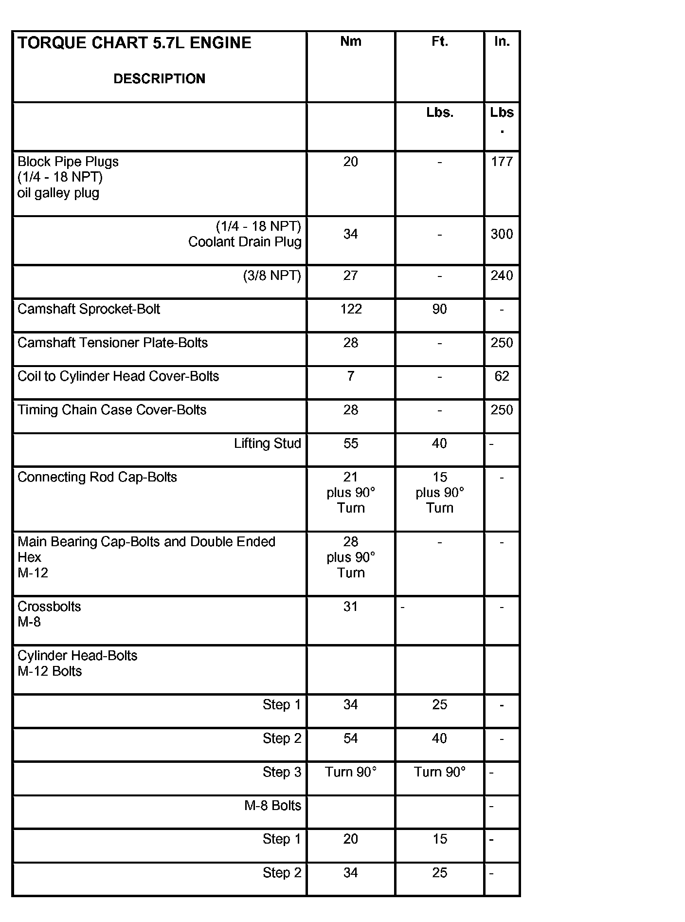 Torque Chart 5.7L Engine (Part 1)