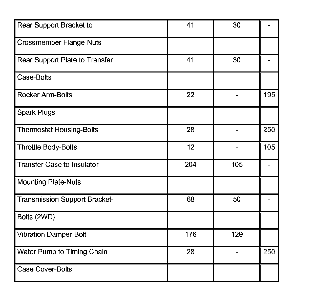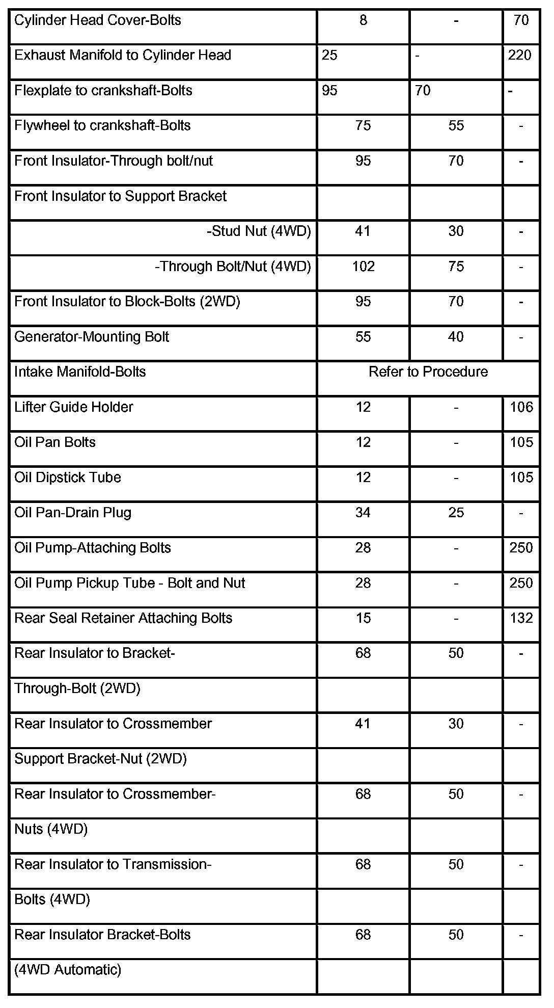 Engine Torque Specifications
