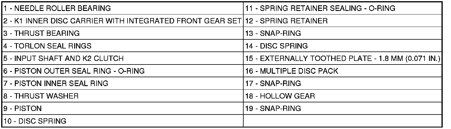 4. Remove snap-ring (17) from K2 outer multiple-disc carrier.