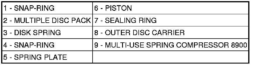 1. Remove snap-ring (1) from outer multiple-disc carrier.