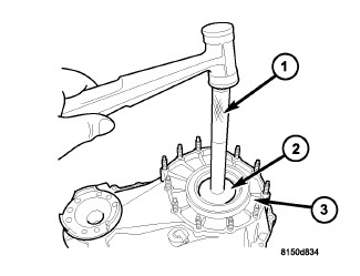 2. Install the new input gear bearing into the front case (3) using Installer 8152 (2), inverted, and Handle C-4171 (1).