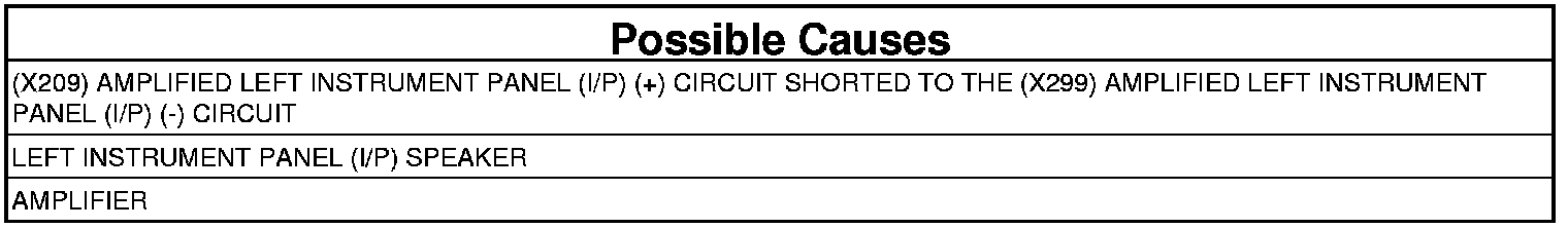- Repair the (X209) Left I/P Speaker (+) circuit for a short to the (X299) Left I/P Speaker (-) circuit.