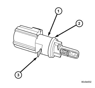 3. Install the IAT sensor into the air inlet hose and rotate clockwise until the release tab (3) engages.