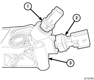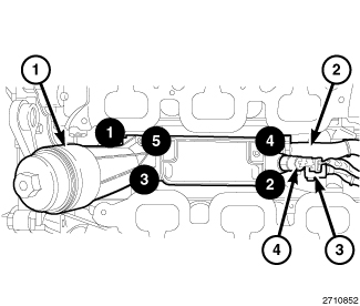 1. Install the oil pressure sensor (2) and tighten to 20 Nm (177 in. lbs.).