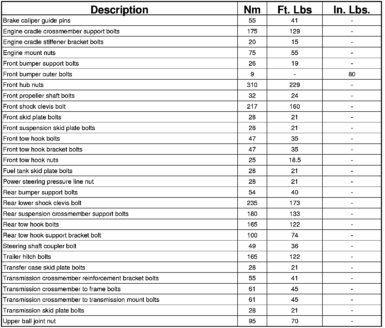 TORQUE SPECIFICATIONS
