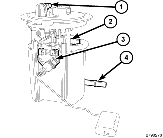 The electric fuel pump is located inside of the main fuel pump module. A 12 volt, permanent magnet, electric motor powers the fuel pump. The electric fuel pump is not a separate, serviceable component.