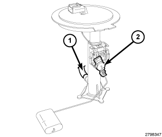 The fuel gauge sending unit (fuel level sensor) is attached to the side of the fuel pump module. The sending unit consists of a float, an arm, and a variable resistor track (card) and should only be replaced if a diagnostic procedure indicates to do so.