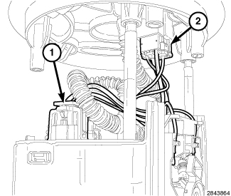 3. Connect the fuel level sending unit electrical connectors (1,2) to the fuel pump module.