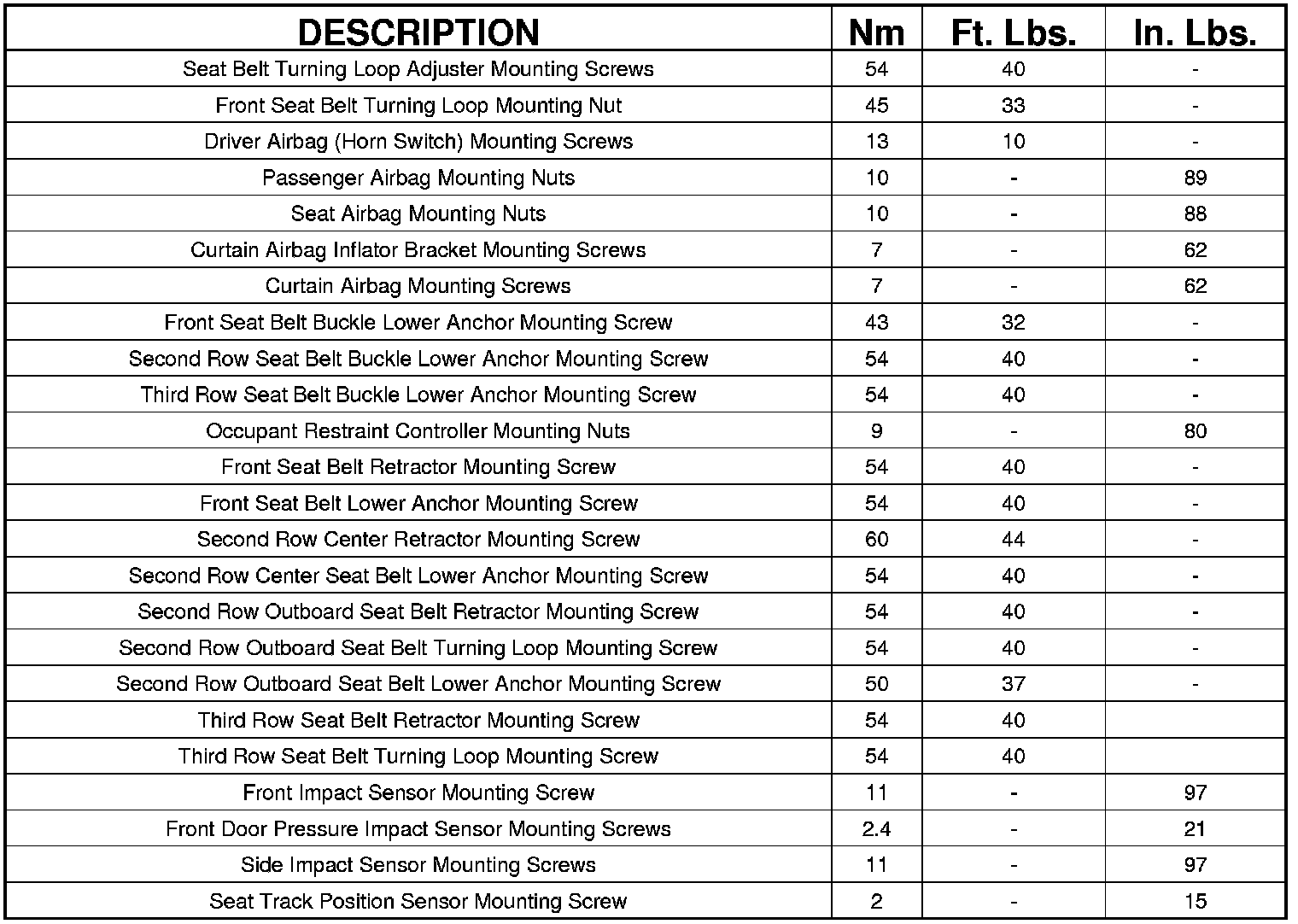 TORQUE SPECIFICATIONS