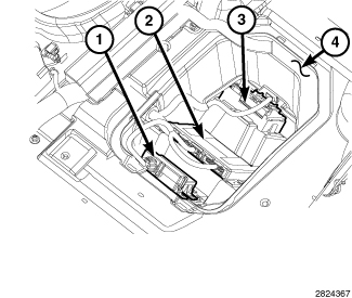 3. Remove the cover panel from the electronic module tub (4) to access the Drive Train Control Module (DTCM) (3).