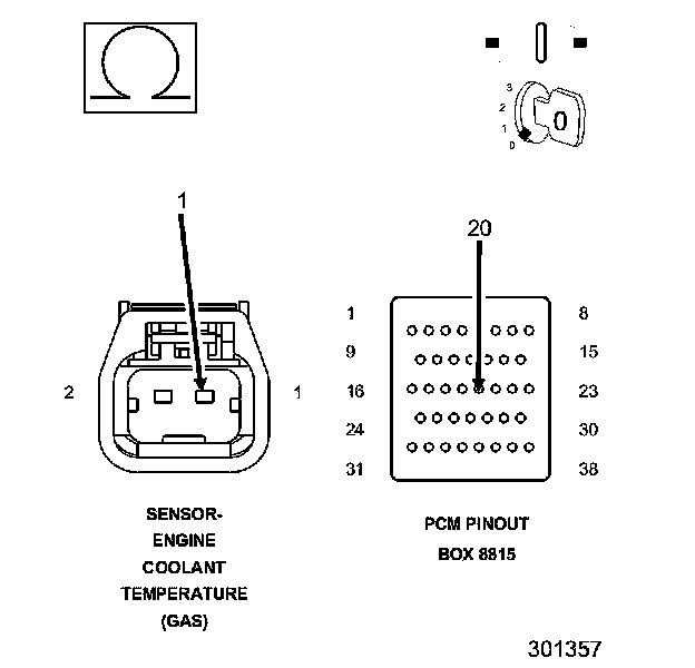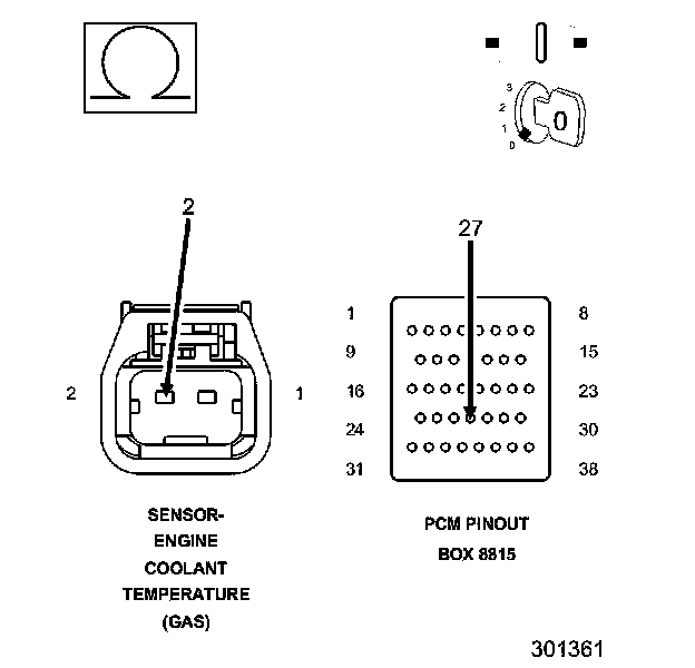 1. Using the wiring diagram/schematic as a guide, inspect the wiring and connectors between the Engine Coolant Temperature Sensor and the Powertrain Control Module (PCM).