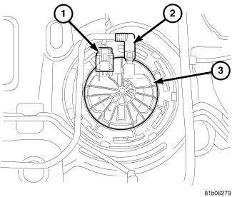 2. Disconnect electrical connector (1) from fuel pump module (3).