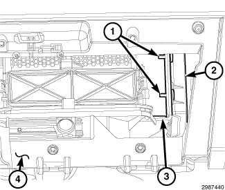 2. Remove the lower glove box from the instrument panel (4). Instrument Panel Glove Box - Removal.
