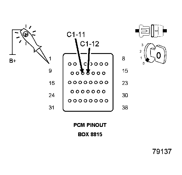 2. Using a 12 Volt test light connected to ground, check the PCM Fused Ignition Switch circuits.