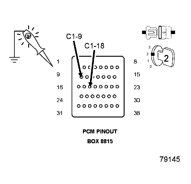 1. Using a 12 Volt test light connected to ground, check the PCM power supply circuits.