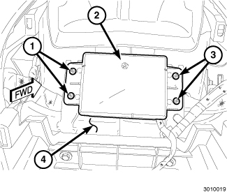 3. Remove the four screws (1 and 3) that secure the A/C heater module (2) to the instrument panel support (4).