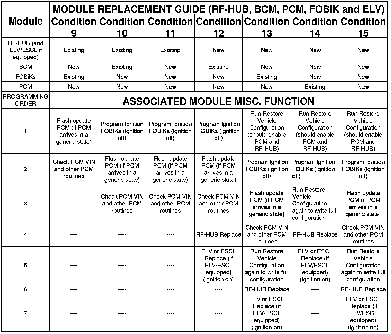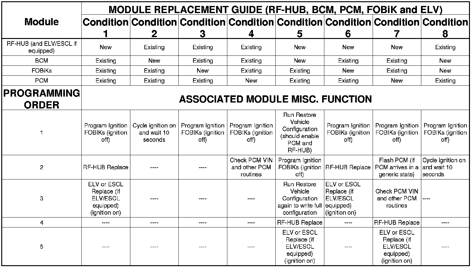 RF Hub, BCM, PCM, FOBiK, And ELV Replacement And Programming Order
