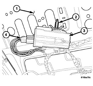 1. Position the heated seat module (3) to the front seat and connect the wire harness connector (4) to the module.