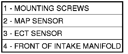 The Engine Coolant Temperature (ECT) sensor (3) is installed into a water jacket at front of intake manifold near rear of generator.